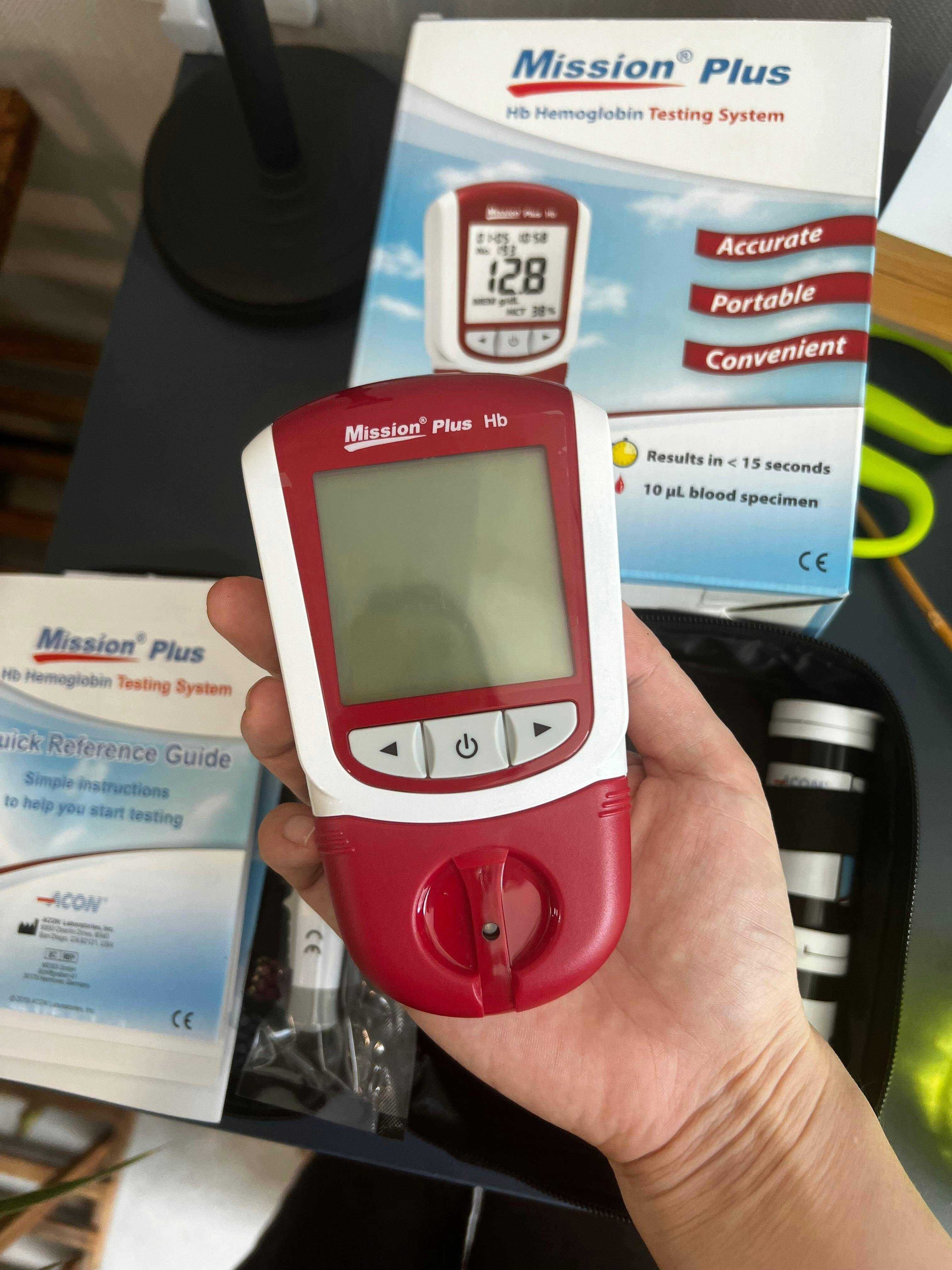 I’ve been using the MISSION Plus Hb meter at home for several weeks to keep an eye on anemia. The setup was straightforward: insert a strip, power on, and use a quick finger-prick sample. Results appear in well under a minute, and the display is easy to read.